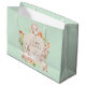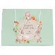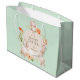 Glad påsk Bunny Rabbits Blommigt Personlig Gift Bag har "Glad påsk" och ditt namn i snyggt, modern typografi omgiven av en blommigt andedräkt i orange, guld och grönsak med tre söta kaniner som håller ett hjärta. Perfekt för Påsk presentemballering. Designad av ©Evco Helgdagars www.zazzle.com/store/evcoholidays