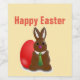 Glad påsk chokladbunny med grönt slips och rött ägg på blekens orange.