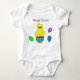 Roligt liten Chick gult som kläckts ur sin färgstarka röda, grönt, blått, lila, gult- strimlad äggskal. Grönt stripe ägg, blåprickat ägg och dekorativt lila ägg med söt grönt blomma. Originalteckning © TamiraZDesigns.