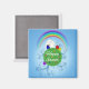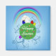 Påsk illustration: planeten Påsk med färgstarka ägg, söt kanin, fjäril, regnbåge, blommor och blommigt prydnadsföremål på ljusblå bakgrund.