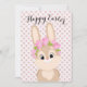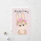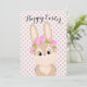 Utformning av lakton på en känslig rosa med blommor. En söt Påskhare med en blombukett kommer att hjälpa till att förmedla ditt varma önskemål för mormor och morfar på den ljusa helgdag av Påsk.