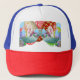 Det är perfektens hatt till bäran medan du firar Påsk på morgonen, samlas i hetten på nybörjareftermiddagen eller återvänder från din rulle på kvällen. Bilden visar Påsk i basket och chickar i blommigtens bakgrund. Om du tycker om den här teckningen kan du besöka min butik chic_design_boutique för matchande/liknande objekt. Länk: https://www.zazzle.com/store/chic_design_boutique