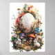 Underbara Påsk Poster med ett stort påskägg och söta djur som en påskhare eller kanin. Magic Fantasy Forest Blommigt Art med blommor och ätliga djur. Giant Påskägg.