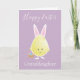 Ett Påsk-kort till din barndotter som har ett leende Påskägg i en knivbutik som bär på en Påsk basket fylld med färgstarka ägg. Insidan av kortet hade ord som du kan anpassa för att visa ditt eget speciella meddelande. Glad påsk, Lila, fardotters Påsk Helgdag-kort Sötsham Food Art | ©Melissa Patton Artist/Illustrator