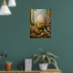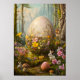Underbara Påsk Poster med ett stort påskägg och söta djur som en påskhare eller kanin. Magic Fantasy Forest Blommigt Art med blommor och ätliga djur. Underbar jakt på Påskägg.