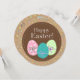 Roligt, färgstarka Påskägg och polkadoter mönster på en papper tittar bakgrund av kraftvärme. Finns på en mängd moderna kontorsprodukter. Adressetiketter, omslagspapper och vävnadspapper, presentpapper, märkre, påsar och favoritlådor, klistermärken, rosett band, anteckningsböcker, bindemedel, kontorsmateriel och kuvert.