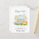 Tvättfärgsillustration av stuga, vår blommor och Påskägg.