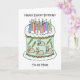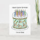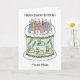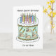 En enkel illustration av en vit kaka som dekorerats med bilder av knivar och morötter runt sidorna och tända ljus överst. Ord "Grattis på födelsedagen till underbart Mamma" följer med bilden som ställs mot en vit bakgrund.