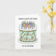 En illustration av en kaka med bilder av bunnier och morötter runt sidorna. Ord ?Glad påsk födelsedag till min bror? följer med bilden.