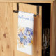 Inget som att se den här vackra kökshandduken hängande på ditt stovhandtag. Lila och vita Påskägg omger en träkrans med hälsning i mitten