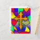 Söt hand plockade kor med ett Påsk-vykort av nedfläckad glasbakgrund.