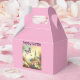 glad påsk gunst låda i pastellrosa med blommor kyrka och fjärilar