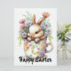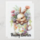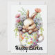 Glad påsk Watercolor Helgdag Card med Bunny i ett te kopp och blommor Spread joy, cheer, merry allting och en lycklig alltid! Helgdagskort som är designade för att göra hela året ljusare.