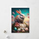 Glad Påsk Akvarell Högtidskort med Kanin, Ägg och Blommor