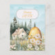 Ett vykort från Glad påsk från ett hem och en varv med ett gigantiskt Påskägg framför omgivet av Daisy. Färgaden ovala och ram kan ändra färg och den text du väljer. Familjetext eller väntext på baksidan.