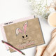 För dem som väljer att hålla er stil neutral med bara en touch av vacker färg! Detta säsongskort för påsk visar en söt kaninansikte med fladdrande öron i en blek rosa färg, ljusa ögon och morrhår i svart, och texten "Glad påsk" i samma färgschema. Bakgrunden är en vacker tan (falskt) jute-design med genomskinliga prickar. (Påskkortet finns också tillgängligt med ett personligt familjenamn eller en anpassad hälsning istället för texten "Glad påsk".) Välj matt eller halvblank finish. Påskkortet är perfekt för påskhälsningar, tackkort, inbjudan eller presentkort. Bläddra bland vår kompletta samling av påskneutraler, tropisk påsk, kustnära påsk och nautiska påsk-dekor