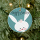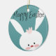 Glad påsk kanin på blå tealbakgrund julgransprydnad keramik