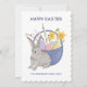 Cute-inbjudan med påsk basket med ägg och blommor och grått bunny.