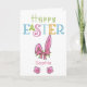 Söt och färgrik personlig påskkort. Designen är tryckt med "glad påsk" i fantasifull typografi och dekorerad med rosa påskharens öron, ett rosa band och kanintassar. Du kan anpassa med ett namn eller släkting på framsidan och din egen hälsning på insidan.