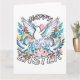 Glad påsk! med en färgstark glatt bild av vår, med duvor och blommor.