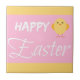 En söt liten chick i gulten, på rosa, med hälsning "Glad påsk" och en anpassningsbar gult gräns.