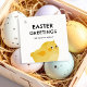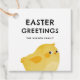 Glad påsk med liten kyckling i gult. Anpassningsbar produkt för en minnesvärd firande. Perfekt för påskfest, påskäggsjakt, påskpicknick eller påskbrunch.