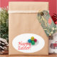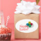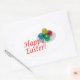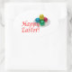 Glad påsk text av rött färg och en vit porslinplåt med fyra färgade ägg av blått, grönt, rött och gult färger. Skriver ut och presenter för alla
