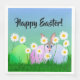 Glad påsk pappersservett med en kanin, ägg och vita prästkragar som sitter på grönt gräs! Kaninen tittar upp bakom de gröna, rosa och blå påskäggen! Se butiken för tematisk dukning.
