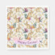 Tan Påskhare sitta bredvid rosa, gult, grönt och guldfärgade blommigtar på en grå vit bakgrund. Ett rosa band med "Glad påsk!" skrivet tvärs över, nära grund i designen hälsar gästerna till din brunch eller luncheon i Påsk Söndag. Cute för både familj och barn.