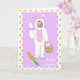 Glad påsk-kort. Cute lila card med morotbakgrund, med en bra Påskhare med ditt barns bild inuti, som du kan ladda upp i personlighetsområdet!