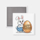 Glad påsk Polka Dot Bunny magnet. Den berömvärda bunny, klädd i blå och vita prick, hoppade stolt runt och höll ett stort Påskägg som sa "Glad påsk" tittar som om det var redot att starta sin egen helgdag!