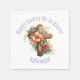En kor av trä med söt vår blommor i dessa Påsk-servetter. Napkins säger att Glad påsk är Risen. Halleluja.
