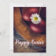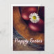Glad påsk! Röda Påskägg med daisy blomma. Julkort