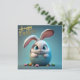 Det här Påsk-kortet är dekorerat med en söt bunny, med stort öron, stort ögon och lite rosa näsa, som kommer från ett ägg, i en animeringsfilm stil. Han är omgiven av några små ägg i olika färgader av rosa, blått, grönt och gult. Lycklig och fessionsbudskapet "Glad påsk" är skrivet i guld brev.