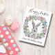 glad påsk söt bunny och blommigt krandfamilj vykort