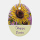 Glad påsk solrosmålning med påskäggets baksida har vår originalmålning av vackra solblommor av gult som är målade av Traci Van Wagoner (www.tracivanwagoner.com) på framsidan med en Glad påsk hälsning som kan anpassas för att säga spelar ingen roll du vill. Baksidan dekoreras som ett påskägg med band av färg som du kan flytta runt hur du vill. Decorera en dekoration för påskägg i dag. De gör perfekter och dekorationer för helgdag Påsk för alla som kärlek solblommor.
