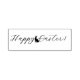 Stilren script text som läser "Glad påsk!" med en söt sittande kanin siluett mellan orden. Perfekt för påskutskick, kuvertdekoration och festliga säsongsdetaljer.