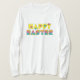 Glad påsk. En gladlynt gullig påskhälsning på en attraktiv skjorta. Ordlycklig är i en ljus cheery gult, och ordpåsken är i en regnbåge av färg. Båda strilas med blommor. Du kan ändra skjortafärgen och eller utforma, om du gillar. Önska detta eller en liknande design på ett annat objekt? Besöka mitt Sensato lager.