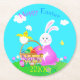 En söt rosa som håller en Påsk basket full med färgstarka Påskägg, en chick som just kläckts och ett meddelande om "Glad påsk".