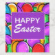 En anpassningsbar vin flaska-etikett som innehåller ett färgstarkt Påskägg mönster tillsammans med texten "Glad påsk".