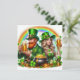Glad påskdag semesterkort med irländsk man och dam som dricker öl, guldgrytor, klöver och en regnbåge
