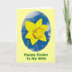 Närbilden fotograferar av den nästan perfekta gula påskliljan silhouetted mot en blå himmel med vitmoln, gult hopslingrat. Detta avbildar, och designen är van vid skapar en kärlek, det romantiska kortet för glad påskpappershälsningen för din fru.