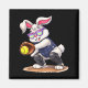 Glad påsklovskanin som spelar softboll-fångare flickor - Fyrkantig Magnet .Fyrkantig Magnet En modern estetik utformad för mångsidighet. En raffinerad design med minimala element.