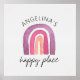 Gör ditt barns rum till deras personliga lyckliga plats med denna minimalistiska men ändå färgglada regnbågsdesign mot en vattenfärgspapperstextur bakgrund. Anpassa enkelt med ditt eget barns namn för en personlig touch. Den ursprungliga vattenfärgdesignen har en centrerad lila och rosa regnbåge med text.