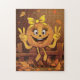 En charmig och glädjefull illustration av en pumpaflicka med strålande leende, en charmerande rosett och en lekfull fredsteckenpose. Omgiven av varma höstlövar och mysiga färger fångar denna illustration årstidens glada anda. Perfekt för Halloween- och höst-tema produkter som klistermärken, muggar, t-shirts, anteckningsböcker och dekorationer. Ett bra val för barn, säsongsgåvor och alla som älskar den söta och mysiga atmosfären under hösten.