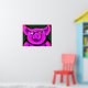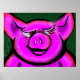 En söt ljusröd gris med ett ljust leende och vackra långa rosa ögonfransar på en mörkgrön bakgrund