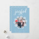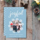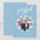 Glad skript blå snöflinga ram foto semesterkort. Vinter semestertema med ett foto omgivet av vackra vita snöflingor. Bakgrunden är blå med ett snöflingamönster. Lägg till ditt foto och anpassa meddelandet och namnen.