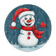 Glad snöman i en tomteluva och halsduk på en snöig bakgrund, perfekt för juldekorationer och vintertema.