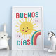 Buenos dias! Häng denna glada barnkammarens konst i ditt nya barns eller kid's rum. Solsken, moln och regnbågar kommer att lysa klart i alla tvåspråkiga och spansktalande hem.