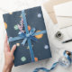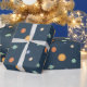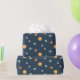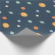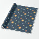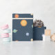 Ett sött rymdtematiskt mönster som kommer med kladder av solen och olika färgglada planeter inklusive jorden som har tokiga moln som ögonbryn. Perfekt för att slå in presenter till en rymdtematisk fest!
